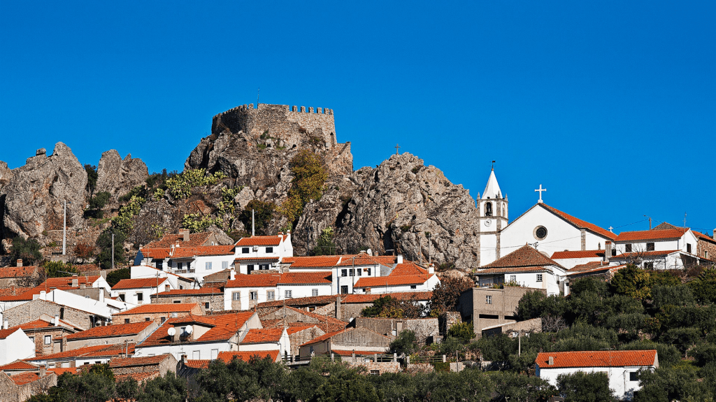 Its castle ruins, first fortified by the Templars, command sweeping views across the Naturtejo Geopark—a UNESCO-recognized landscape where sea fossils rest in ancient quartzite rock, 480 million years old.